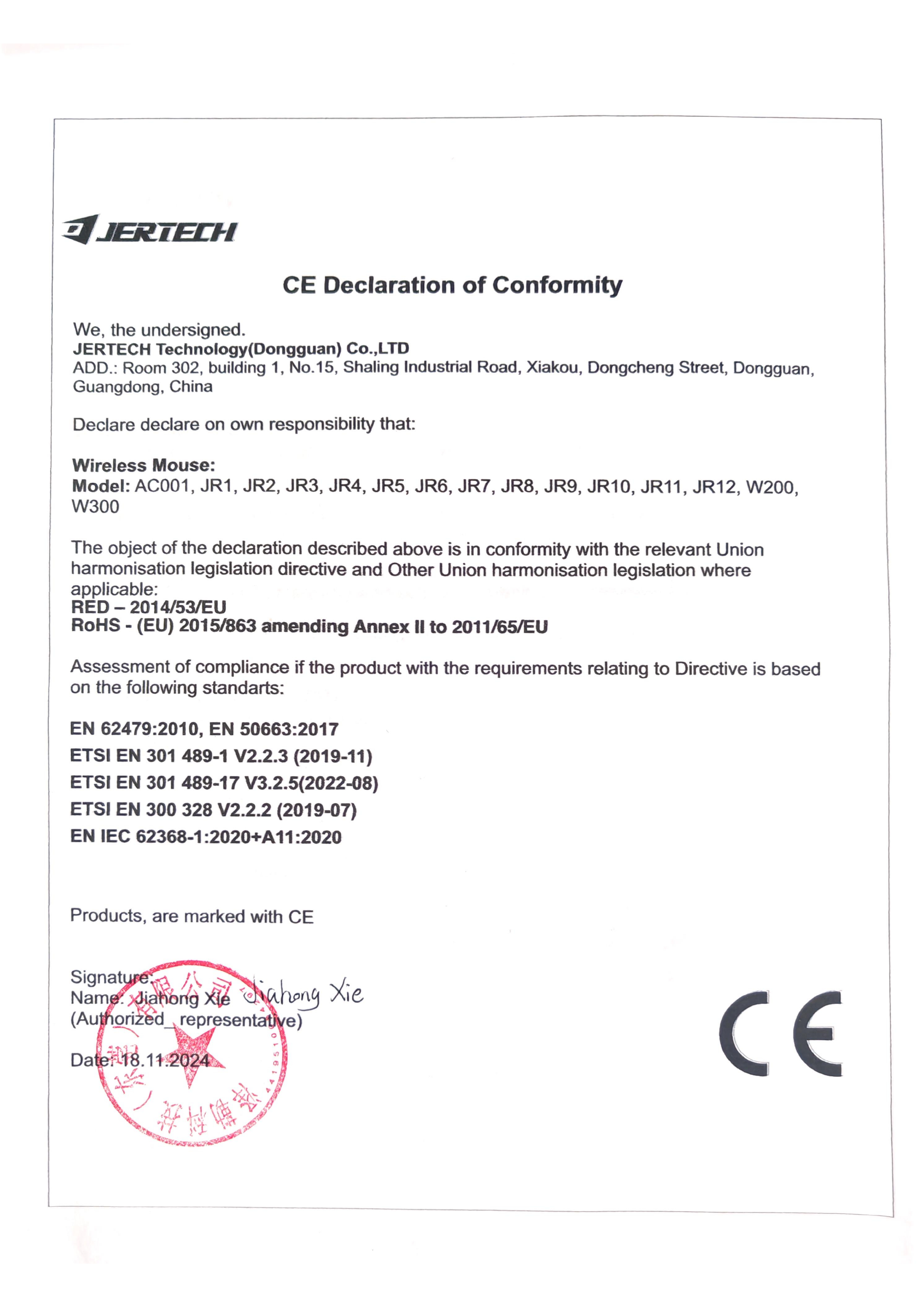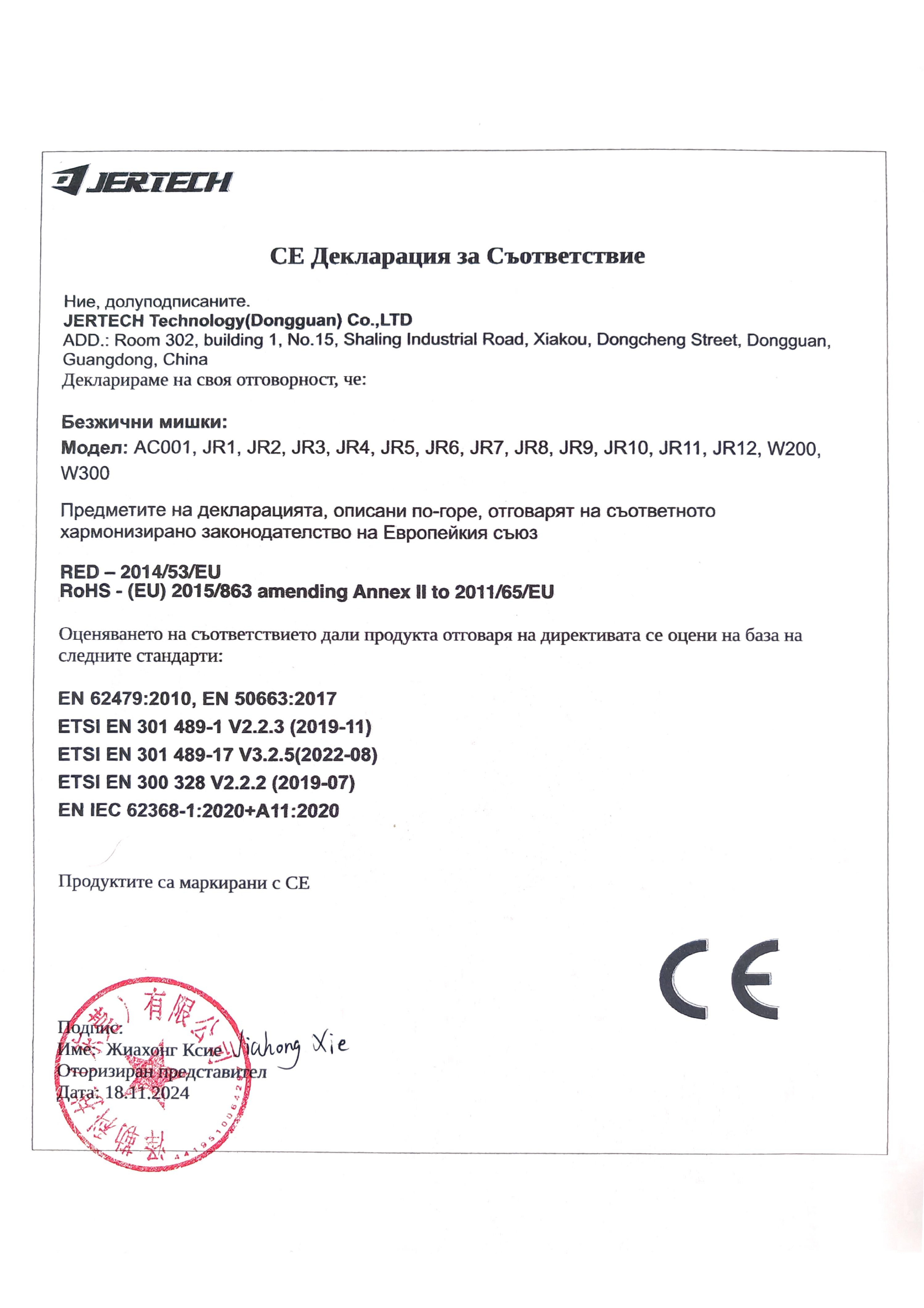 Декларации за съответствие на безжична мишки