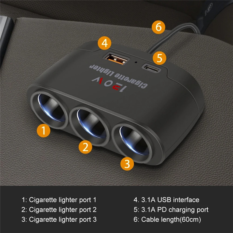 Този разклонител за кола 12V/24V е идеалният избор за пътувания и ежедневна употреба, когато се налага да зареждате няколко устройства едновременно – смартфони, таблети, GPS, DVR и други автоаксесоари.