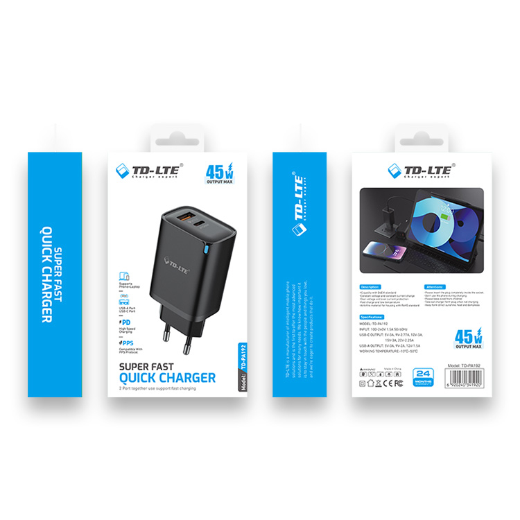 220V Зарядно TD-PA192 45W PD Charge + QC3.0 Type-C + USB
