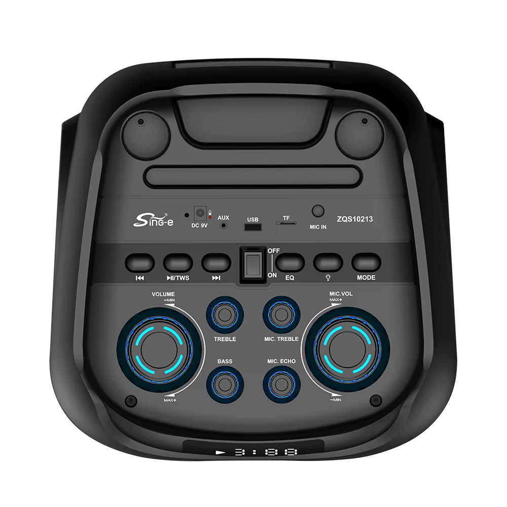 Bluetooth парти тонколона Sing-E ZQS10213 е мощна подова аудио система, създадена за силен и чист звук, динамична атмосфера и дълготрайно забавление. С обща изходна мощност 60 W, два фронтални говорителя и RGB осветление, тя е идеален избор за партита, събития и караоке както у дома, така и на открито.