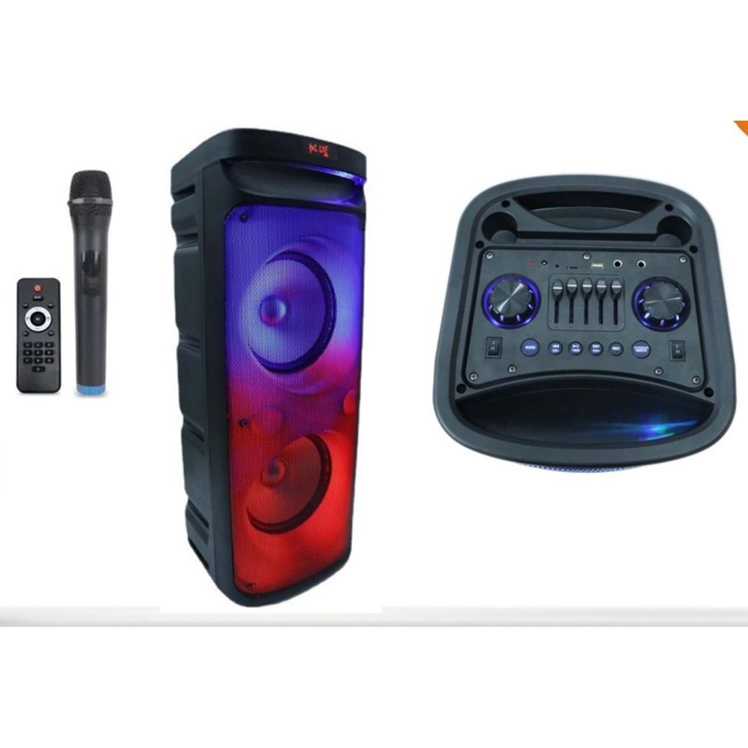 Колоната се доставя с безжичен микрофон и дистанционно управление.